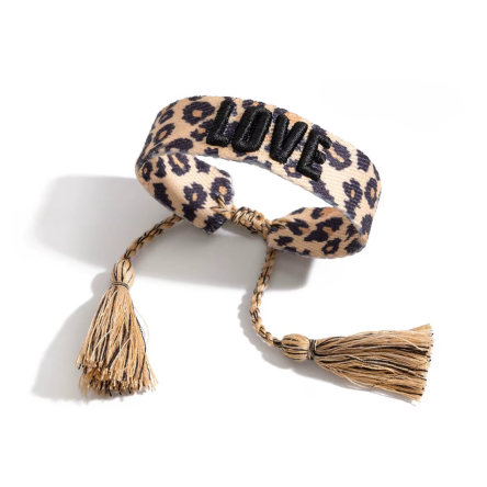 Bransoletka w panterkę z napisem love to połączenie uroku i charakteru. Wykonana z miękkiego, trwałego sznurka o szerokości 1,83 cm, przyciąga wzrok subtelnym wzorem panterki ozdobionym różowymi serduszkami. Dzięki regulowanemu zapięciu dopasujesz ją idealnie do nadgarstka – maksymalna długość wynosi 25 cm.