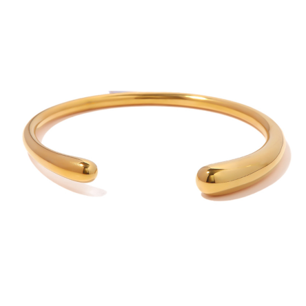 Ta sztywna bransoletka została wykonana z wysokiej jakości stali szlachetnej i pokryta warstwą 18-karatowego złota, co nadaje jej subtelnego blasku i nowoczesnej elegancji.