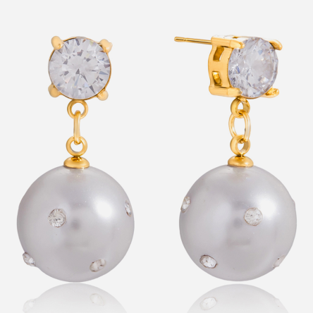 Kolczyki damskie złote z perłami i kryształami FUGJDE108006