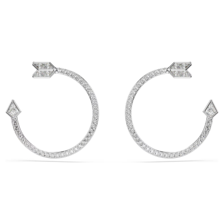 Klasyczne kolczyki typu hoop zyskują romantyczny twist w tych wyjątkowych kolczykach Idyllia, których forma została zainspirowana strzałami Amora. Smukłe rodowane wykończenie nadaje im nowoczesnej elegancji, a kompozycja bezbarwnych kryształów o różnych szlifach zapewnia efektowną grę światła.