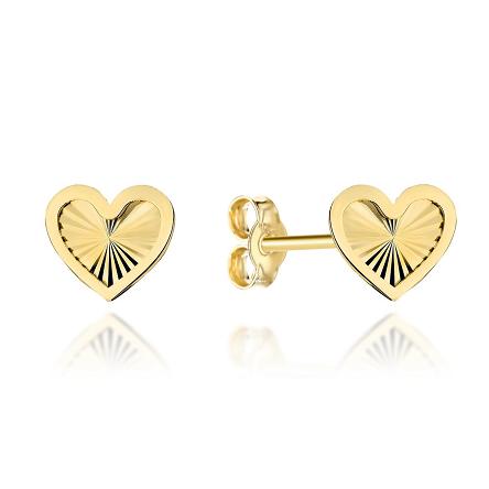 Precyzyjnie wykonane złote kolczyki w kształcie serduszek próby 375, która gwarantuje trwałość i wytrzymałość na lata.