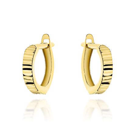 Precyzyjnie wykonane złote kółeczka próby 585 zostały ozdobione delikatnym diamentowaniem.