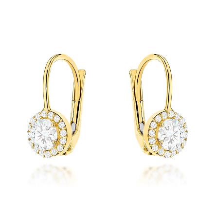 Precyzyjnie wykonane złote kolczyki próby 585 z cyrkoniami.