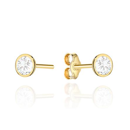 Precyzyjnie wykonane złote kolczyki próby 585 z białymi kamieniami.