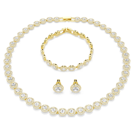 Podaruj sobie lub bliskiej osobie wyjątkową kompozycję pełną światła dzięki temu pięknemu kompletowi biżuterii Swarovski, który obejmuje naszyjnik, kolczyki oraz bransoletę. Każdy element został zaprojektowany z myślą o wygodzie noszenia i zachwyca bezbarwnymi kryształami osadzonymi w pozłacanej oprawie, tworząc elegancki i ponadczasowy design.