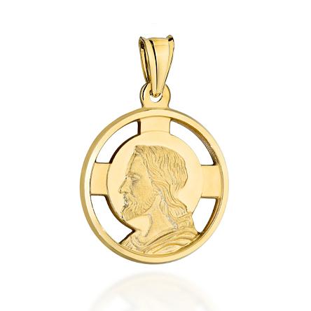 Okrągły medalik z żółtego złota z wizerunkiem Pana Jezusa