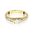 Klasyczny pierścionek idealny na zaręczyny, jak również rocznicę lub inną ważną dla Nas okazję. Pierścionek wykonany z najwyższej jakości lśniącego żółtego złota próby 585 z centralnym brylantem o masie 0,23 ct oraz dodatkowymi brylantami o łącznej masie 0,10 ct (12 x 0,0086ct). Bardzo dobra czystość i biel Si2/H tworzy harmonijne połączenie kamienia z polerowanym złotem.