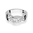 Widowiskowy pierścionek wykonany z najwyższej jakości lśniącego białego złota próby 585, który w subtelny, ale jednocześnie zjawiskowy sposób, podkreśla blask brylantów o łącznej masie 0,10ct w kolorze białym (1 x 0,05ct oraz 10 x 0,005 ct) o czystości SI2 oraz barwie H. Unikalny wzór pierścionka podkreśla jego nietuzinkowa stylistyka.