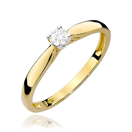 Klasyczny pierścionek idealny na zaręczyny, jak również rocznicę lub inną ważną dla Nas okazję. Pierścionek wykonany z najwyższej jakości lśniącego żółtego złota próby 585 z brylantem o masie 0,10 ct. Bardzo dobra czystość i biel Si2/H tworzy harmonijne połączenie kamienia z polerowanym złotem.