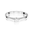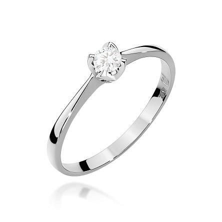 Pierścionek wykonany z najwyższej jakości białego złota próby 585 oraz jednego, centralnie usytuowanego kamienia szlachetnego w szlifie brylantowym o masie 0,10 ct (czystość SI2, barwa H) ujętego w prostej oprawie, która podkreśla nieskazitelny blask brylantu.