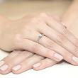 Bardzo dobra czystość brylantu SI2 oraz barwa H sprawia, iż pierścionek w finezyjny sposób olśniewa kobiecą dłoń, nadając jej subtelnego wyglądu.