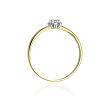 Uroczy, a zarazem oryginalny pierścionek wykonany z najwyższej jakości lśniącego żółtego złota próby 585, udekorowanego nieskazitelnie mieniącym się kamieniem szlachetnym w szlifie brylantowym o masie 0,10 ct (czystość SI2, barwa H).