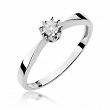Pierścionek wykonany z najwyższej jakości białego złota próby 585 oraz jednego, centralnie usytuowanego kamienia szlachetnego w szlifie brylantowym o masie 0,15 ct. Bardzo dobra czystość brylantu SI2 oraz barwa H sprawi, iż pierścionek w finezyjny sposób olśni delikatną kobiecą dłoń, podkreślając jej piękno i jednocześnie nadając jej eleganckiego wyglądu.