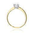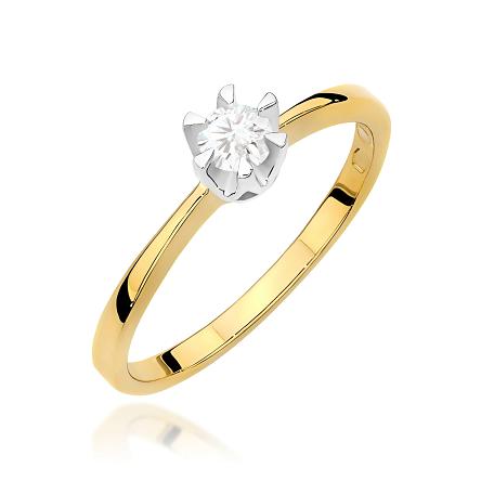 Klasyczny pierścionek wykonany z najwyższej jakości dwukolorowego złota próby 585 oraz jednego, centralnie usytuowanego kamienia szlachetnego w szlifie brylantowym o masie 0,20 ct. Bardzo dobra czystość brylantu SI2 oraz barwa H sprawi, iż pierścionek w nieziemski sposób olśni delikatną kobiecą dłoń.