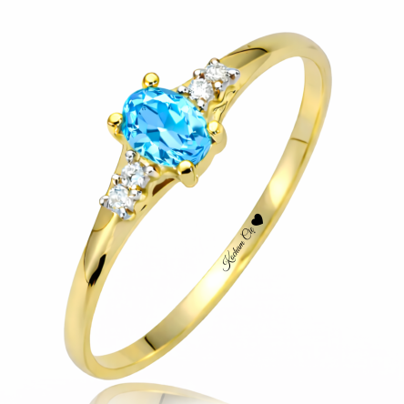 Klasyczny złoty pierścionek z błękitną cyrkonią – próba 333