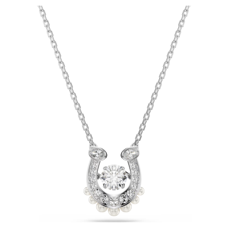 Podkreśl swój blask i pozytywną energię dzięki temu wyjątkowemu naszyjnikowi Swarovski, którego głównym motywem jest symboliczna podkowa – znak szczęścia, ochrony i sukcesu. Zawieszka została wykonana w rodowanej oprawie, ozdobionej bezbarwnymi kryształami oraz mikroperełkami Swarovski Crystal Pearls, które dodają całości subtelnej elegancji.