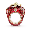 Ten wyjątkowy pierścionek z kolekcji Idyllia zachwyca motywem soczystej truskawki, który wygląda niemal tak apetycznie, jak prawdziwy owoc. Projekt inspirowany ogrodem Idyllia łączy pięć odcieni czerwonych kryształów, które razem tworzą głębię koloru i realistyczny efekt.