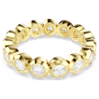 Całość zdobi pełny krąg okrągło szlifowanych Swarovski Zirconia, z których każda została osadzona w nowoczesnej oprawie typu bezel. Taka kompozycja nadaje pierścionkowi współczesny charakter i sprawia, że kamienie pięknie odbijają światło z każdej strony.