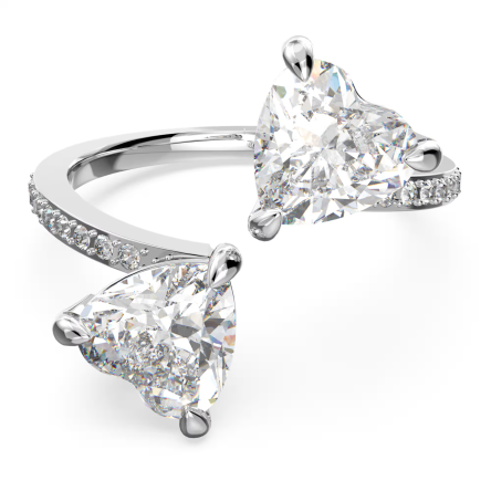 Ten powlekany rodem pierścionek Swarovskiego inspirowany jest ideą spotkania dwóch serc. Dwa spotykające się pośrodku kunsztownie oszlifowane kamienie w kształcie serc oddają ducha romantycznej miłości. Prosta, lecz elegancka konstrukcja podkreśla błyszczącą biel serc. Ponadczasowa symbolika sprawia, że pierścionek ten jest idealnym prezentem dla ukochanej osoby.