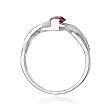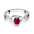 Czarujący pierścionek wykonany został z najwyższej jakości kruszcu - białego złota próby 585 oraz jednego, centralnie usytuowanego rubinu o masie 0,60 ct. Oryginalna konstrukcja szyny pierścionka zdobiona kamieniami szlachetnymi w szlifie brylantowym o łącznej masie 0,05 ct (czystość SI2, barwa H) w uroczy sposób eksponuje wytworny charakter rubinu, nadając mu niezwykłego uroku.