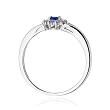 Reprezentatywny pierścionek wykonany został z najwyższej jakości lśniącego białego złota próby 585 oraz jednego, centralnie usytuowanego szafiru o masie 0,15 ct, otoczonego kamieniami szlachetnymi w szlifie brylantowym o łącznej masie 0,09 ct (czystość SI2, barwa H).