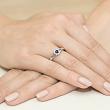 Design pierścionka podkreślony został za pomocą nieszablonowej konstrukcji pierścionka – motywu kwiatu oraz olśniewającego blaskiem szafiru i brylantów. Oryginalny wzór pierścionka w uroczy sposób eksponuje wysublimowany charakter pierścionka.
