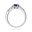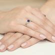 Design pierścionka podkreślony został za pomocą olśniewającego blaskiem szafiru i brylantów. Oryginalny wzór pierścionka w uroczy sposób eksponuje jego wytworny charakter, nadając kobiecej dłoni niezwykłego uroku.