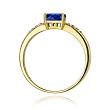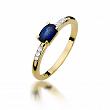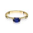 Efektowny pierścionek wykonany z lśniącego żółtego złota próby 585, udekorowany centralnie usytuowanym owalnym szafirem o masie 0,70 ct! Bardzo dobra czystość i biel (Si2/H) otaczających go brylantów (masa 0,03 ct) tworzy harmonijne połączenie szafiru z polerowanym złotem.
