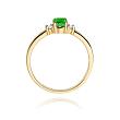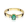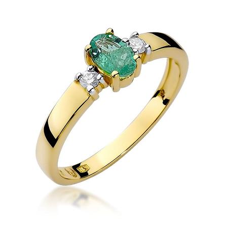 Czarujący pierścionek wykonany został z najwyższej jakości żółtego złota próby 585 oraz jednego, centralnie usytuowanego szmaragdu o masie 0,40 ct, po którego dwóch stronach zostały umieszczone kamienie szlachetne w szlifie brylantowym o łącznej masie 0,08 ct (czystość SI2, barwa H).