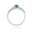 Czarujący pierścionek wykonany został z najwyższej jakości białego złota próby 585 oraz jednego, centralnie usytuowanego szmaragdu o masie 0,40 ct, po którego dwóch stronach zostały umieszczone kamienie szlachetne w szlifie brylantowym o łącznej masie 0,08 ct (czystość SI2, barwa H).
