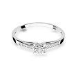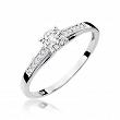 Delikatny pierścionek wykonany z najwyższej jakości lśniącego białego złota próby 0,585, który w subtelny sposób podkreśla blask brylantów, którymi został ozdobiony (łączna masa brylantów 0,13 ct, czystość SI2 oraz barwa H).