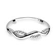 Pierścionek wykonany jest z najwyższej jakości białego złota próby 585 oraz ozdobiony jest 14 kamieniami szlachetnymi o szlifie brylantowym usytuowanymi w misternej oprawie - przypominającej płynące fale. Łącza masa brylantów 0,07 ct, czystość SI2, barwa H.