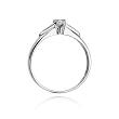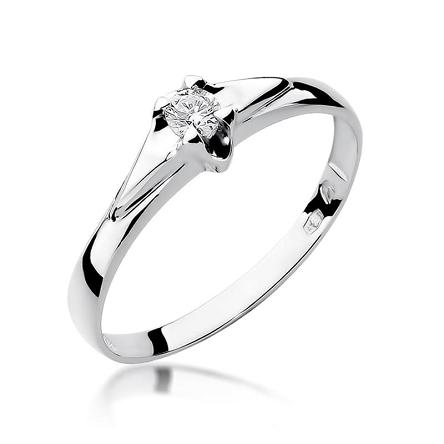 Efektowny pierścionek wykonany z lśniącego białego złota próby 585, udekorowany centralnie usytuowanym brylantem o masie 0,10 ct!