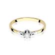 Klasyczny pierścionek wykonany z dwukolorowego złota próby 585 oraz jednego, centralnie usytuowanego brylantu o masie 0,10 ct, czystości SI2 oraz barwie H.