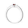 Efektowny pierścionek wykonany z lśniącego białego złota próby 585, udekorowany centralnie usytuowanym rubinem o masie 0,15 ct.