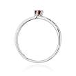 Efektowny pierścionek wykonany z lśniącego białego złota próby 585, udekorowany centralnie usytuowanym rubinem o masie 0,15 ct.