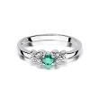 Pierścionek zaręczynowy z białego złota z brylantami i szmaragdem 0.03 ct