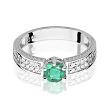 Pierścionek zaręczynowy z białego złota z brylantami i szmaragdem 0.08 CT