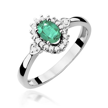 Efektowny pierścionek wykonany z lśniącego białego złota próby 585, udekorowany centralnie usytuowanym szmaragdem o masie 0,40 ct!