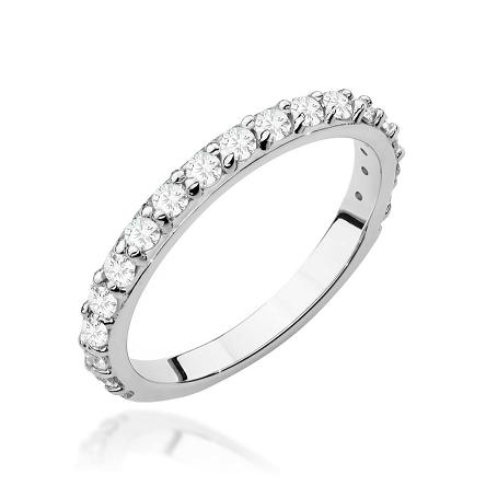 Zachwycający klasyczny pierścionek w formie obrączki wykonany z najwyższej jakości złota próby 585. Diamenty laboratoryjne (17 szt.) o łącznej masie 0,34 ct, czystości VS2 i barwie F – olśniewają swoim doskonałym blaskiem i klarownością.