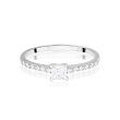 Zachwycający klasyczny pierścionek zaręczynowy wykonany z najwyższej jakości złota próby 585. Główny kamień w szlifie Princess – diament laboratoryjny o wielkości 0,30 ct, czystości VS2 i barwie F – olśniewa swoim doskonałym blaskiem i klarownością. Jego piękno podkreślają subtelne, boczne diamenty laboratoryjne o łącznej masie 0,10 ct, które dodają kompozycji elegancji i finezji.