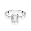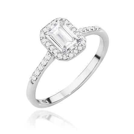 Zachwycający pierścionek zaręczynowy wykonany z najwyższej jakości złota próby 585. Główny kamień – ośmiokątny diament laboratoryjny o wielkości 0,60 ct, czystości VS2 i barwie F – olśniewa swoim doskonałym blaskiem i klarownością. Jego piękno podkreślone zostało za pomocą dodatkowych diamentów laboratoryjnych (łączna masa 0,19 ct) znajdujących się wokół centralnego kamienia i na szynie pierścionka, co dodaje mu elegancji i finezji.