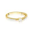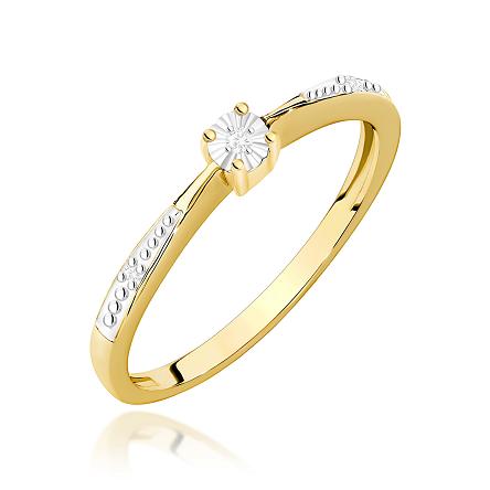 Pierścionek wykonany został z zółtego złota próby 0,585 i ozdobiony jest brylantami o łącznej masie 0,02 ct, czystości SI oraz barwie H, kamienie posiadają Certyfikat Autentyczności.