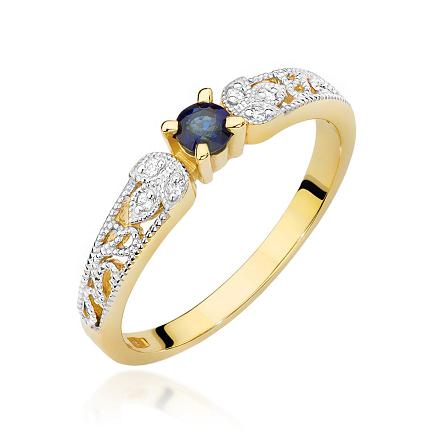 Pierścionek zaręczynowy z brylantami i szafirem 0.03