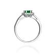 Luksusowy pierścionek wykonany z najwyższej jakości lśniącego białego złota próby 585, ozdobiony brylantami o łącznej masie 0,20 ct oraz szmaragdem o masie 0,50 ct! Diamenty w szlifie brylantowym o bardzo dobrej czystości i bieli Si2/H tworzą harmonijne połączenie z polerowanym złotem oraz podkreślają niezwykły blask i wielkość szmaragdu, nadając kobiecej dłoni zjawiskowego wyglądu!