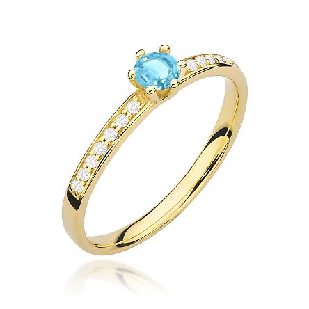 Pierścionek wykonany z żółtego złota próby 585 oraz jednego, centralnie usytuowanego topazu o masie 0,15ct!