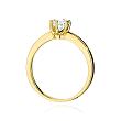 Elegancki pierścionek wykonany z lśniącego żółtego złota próby 585, udekorowany centralnie usytuowanym białym szafirem o masie 0,50 ct w klasycznej oprawie.