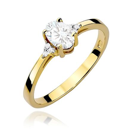 Pierścionek zaręczynowy z żółtego złota z brylantami i białym szafirem 0.05 ct
