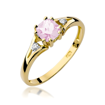 Pierścionek wykonany z żółtego złota próby 585 oraz jednego, centralnie usytuowanego różowego topazu o masie 0,65ct!