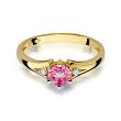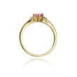 Pierścionek zaręczynowy z żółtego złota z brylantami i różowym topazem 0.03 ct